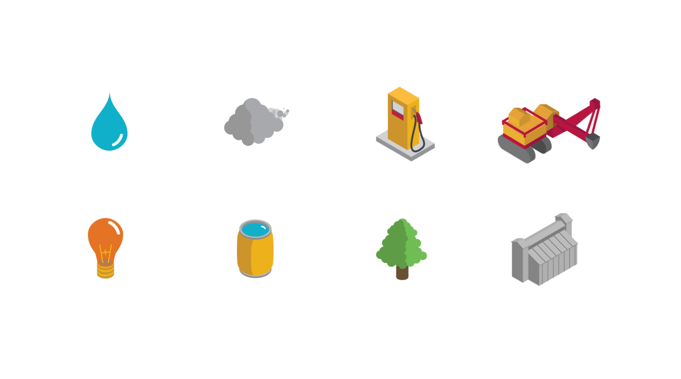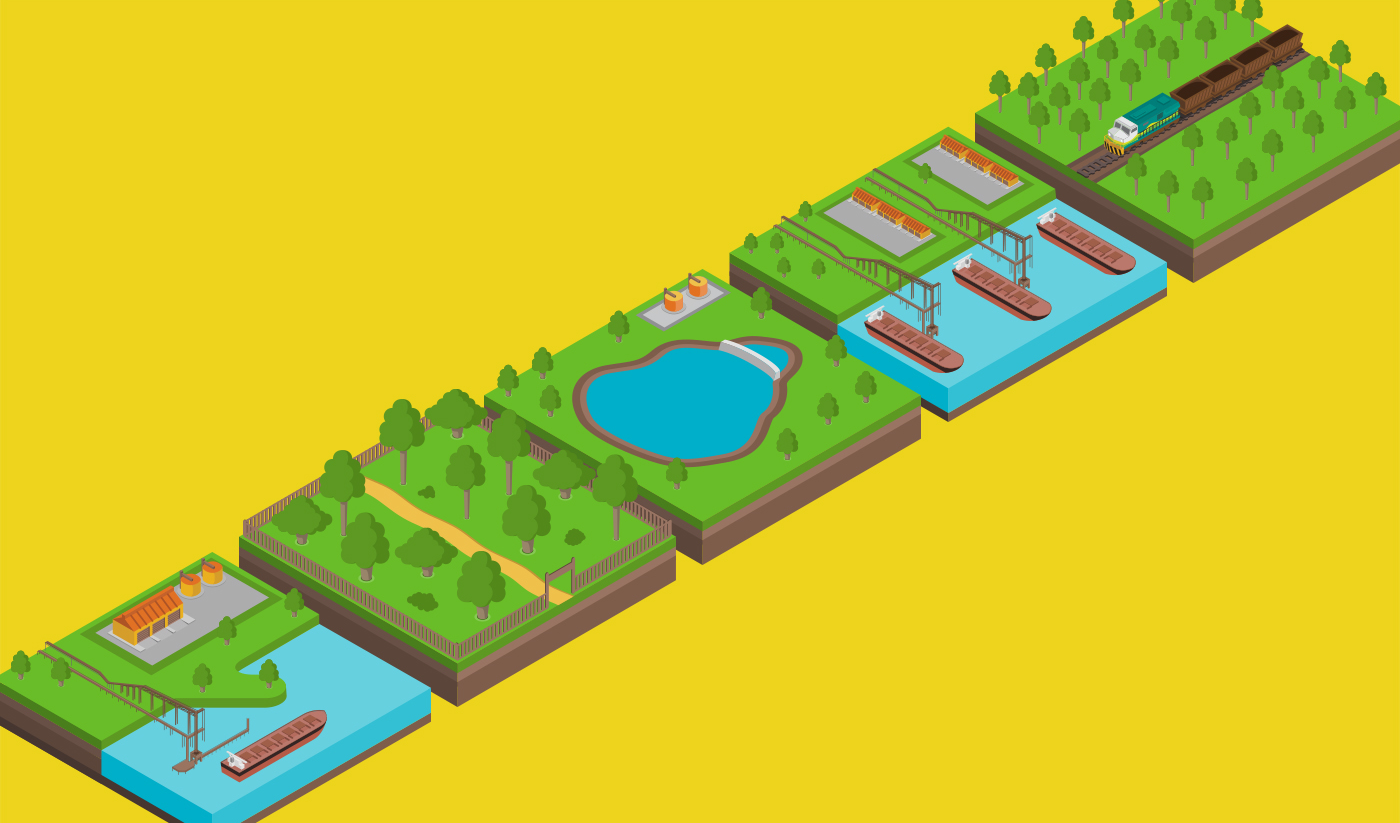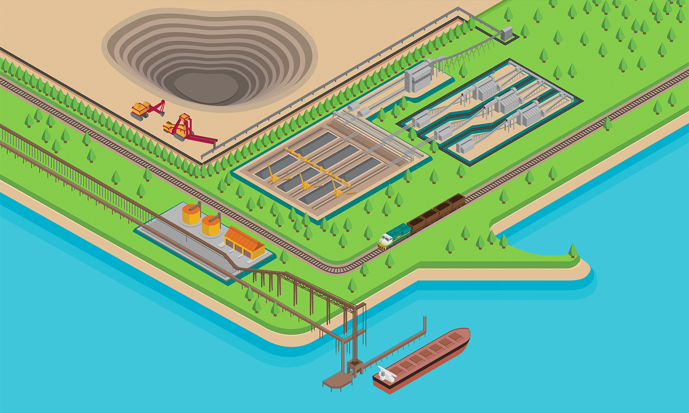 Isometric illustrations developed for a series of infographics for the mining company Vale.